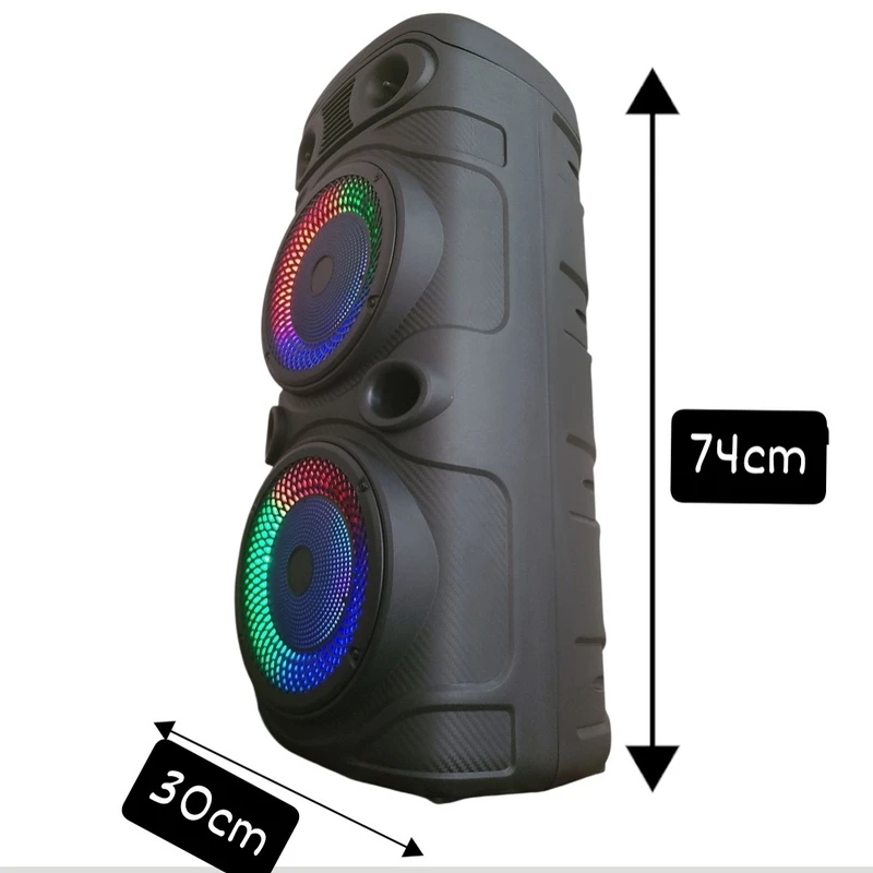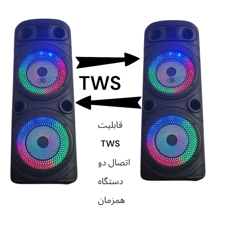 این اسپیکر با امکانات گوناگون نظیر اتصال همزمان اسپیکر ها یه یک دیگر TWS تنظیم BASS, TREBLE, ECHO و... همچنین بلوتوث ،AUX,TF , پورت USB، رادیو FM،میکروفن با کیفیت، ریموت و نورپردازیRGB متنوع، آن را به بهترین انتخاب برای همه تبدیل میکند. اسپیکر مذکور با توان و کیفیت صدای بالا، یکی از بهترین گزینههای بازار برای علاقمندان به موسیقی و سرگرمی می باشد.از قابلیت های مورد توجه این اسپیکر، استفاده از بلوتوث به روز است که امکان اتصال سریع و پایدار به دستگاههای مختلف را فراهم میکند. با داشتن پورت USB و درگاه کارت حافظه، aux و بلوتوث میتوانید به راحتی از فایلهای موسیقی موجود در حافظه داخلی یا دستگاههای خارجی استفاده کنید. وجود رادیو FM در این اسپیکر، امکان گوش دادن به محتوای مورد علاقه در هر زمان و مکان را فراهم میکند.این اسپیکر قادر است صدای قوی و بینظیری را تولید کند.میکروفون با کیفیت این اسپیکر میتواند لذت استفاده را بیشتر کند. از لحاظ طراحی، این اسپیکر دارای ابعاد مناسب و بلندگوی قدرتمند است. باتری بادوام این اسپیکر امکان استفاده مداوم از آن را فراهم ساخته است