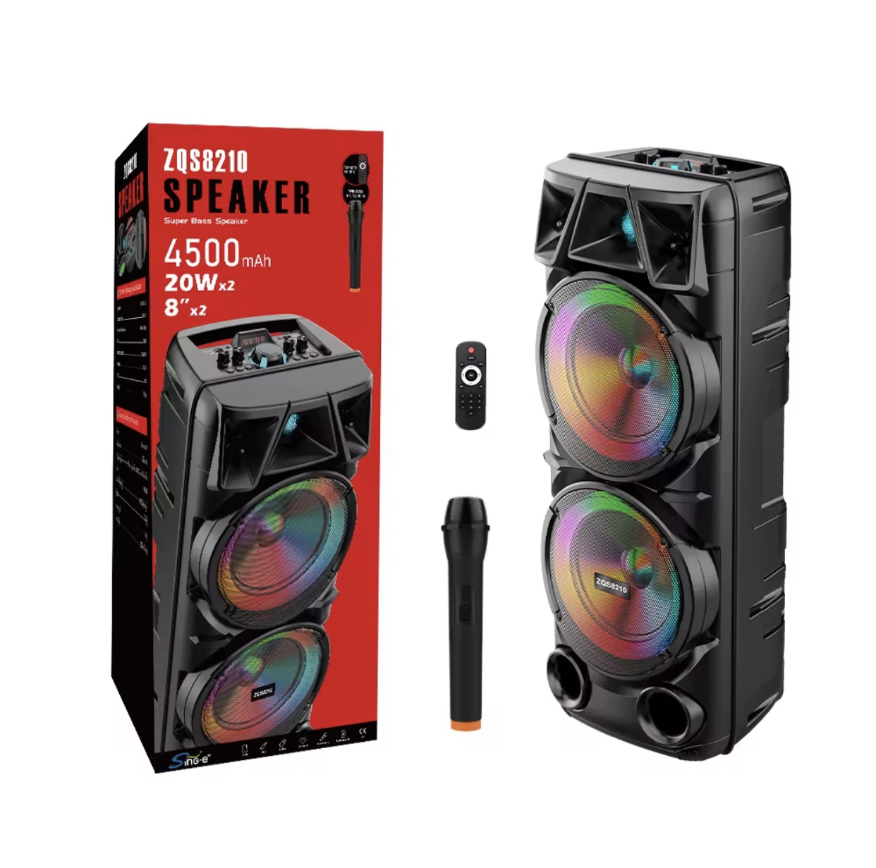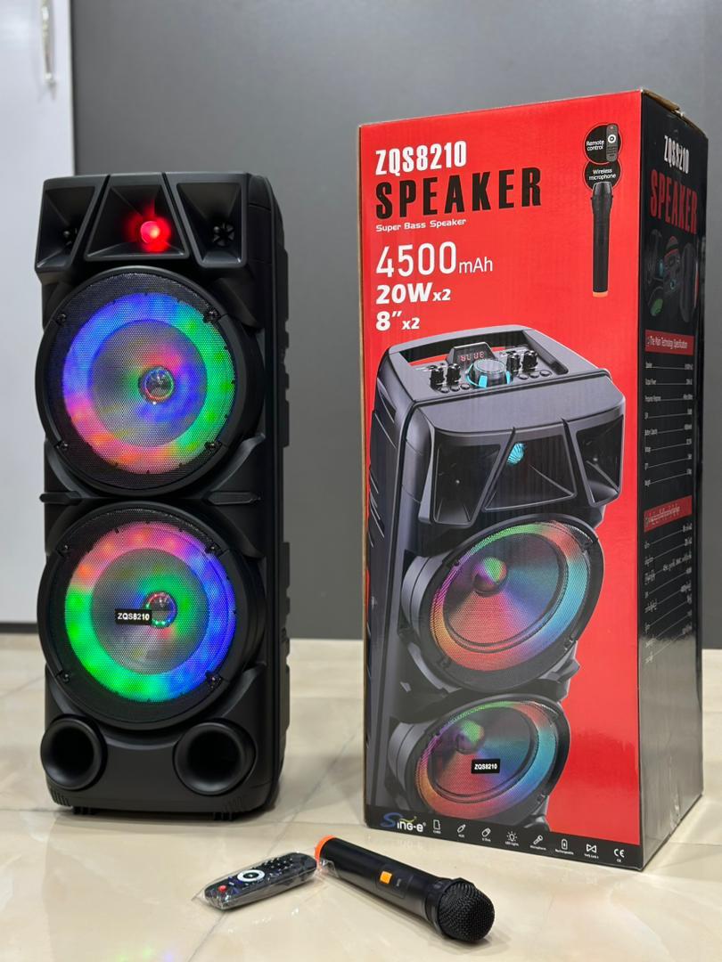 *برند ZQS8210**سایز 16 اینچ(سایز بزرگ)**اسپیکر 2*20وات**تنظیمات حرفه ای*مشخصات فنی اسپیکر قابل حمل مدل ZQS-8210مدل: ZQS-8210نوع دستگاه: اسپیکر بلوتوثی قابل حملنوع باتری: لیتیومی قابل شارژظرفیت باتری: 4500میلیآمپر ساعت (mAh)مدت زمان شارژ کامل: حدود 2 تا3ساعتمدت زمان پخش موسیقی: 2 تا 4 ساعت (بسته به میزان صدا)امکانات و قابلیتها • اتصال بیسیم: بلوتوث نسخه 5.0 با برد اتصال تا 10 متر • اتصال باسیم: ورودی AUX / جک 3.5 میلیمتری • پورتها: USB / Micro SD / ورودی میکروفون / ورودی شارژ DC 5V • قابلیت TWS: امکان اتصال دو دستگاه به یکدیگر برای صدای استریو
