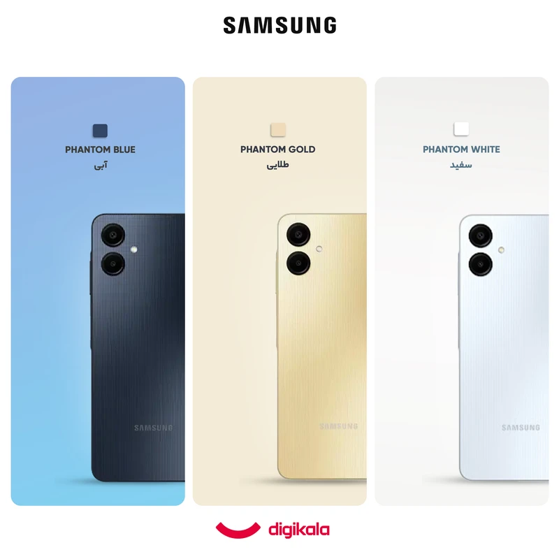 نوع گوشی موبایل سیستم عامل اندروید دسته بندی اقتصادی مدلGalaxy A۰۶زمان معرفی۱۶ آگوست ۲۰۲۴ابعاد۱۶۷.۳x۷۷.۳x۸ میلیمتر